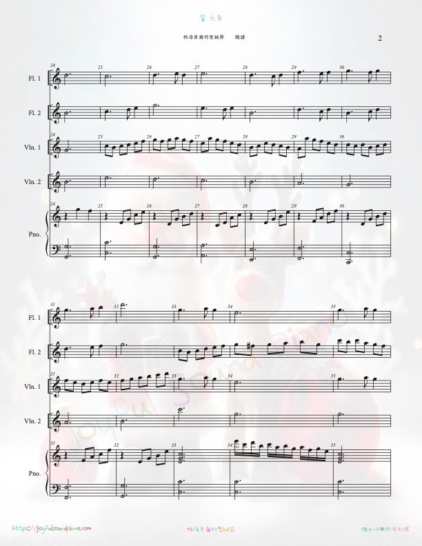 - 分譜:為兩支長笛、兩把小提琴及鋼琴提供獨立樂譜。